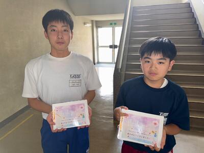 給食の時間に、給食委員会から調理員の方、田代栄養教諭へお礼のメッセージを送り、全校生徒の拍手で感謝の意を表しました。
