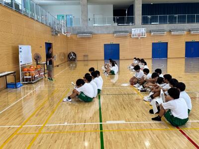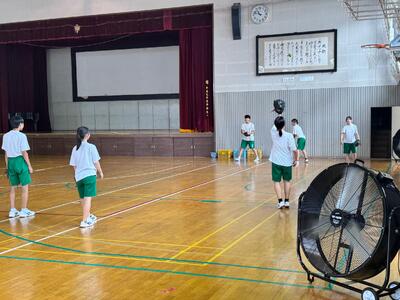 まだ暑い日が続いていますので、体育の授業は体育館で行われていました。