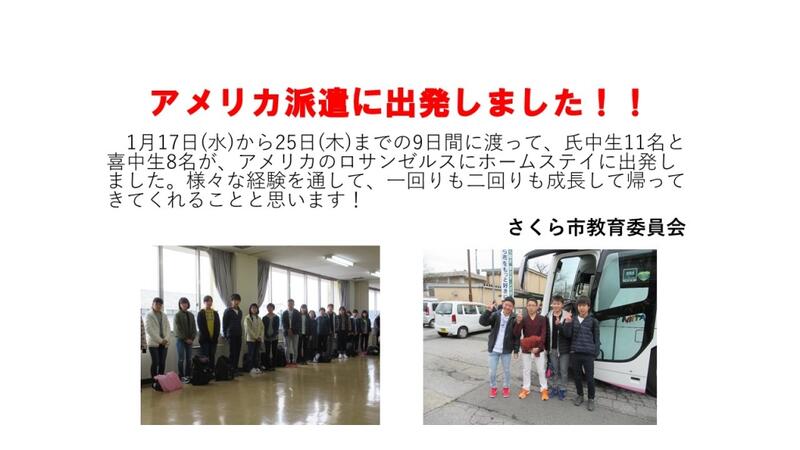 研修は1月17日から25日までの9日間で、ロサンゼルスにホームステイします。様々な経験を通して、成長することを期待しています。