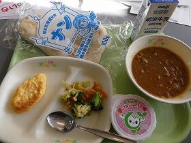 本日は、インド料理の献立で、キーマカレーとナンが出ました。