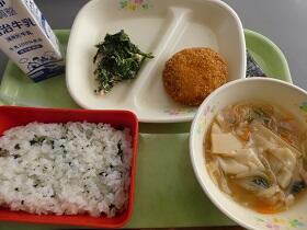 ほうれん草のツナあえ ワンタンスープ 牛乳 です。