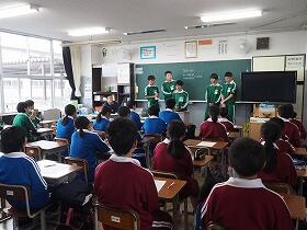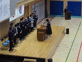 第3学年では、各クラスの学級委員になった2名が前に出て、