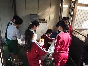 各クラスで回収している牛乳パックのとりまとめを