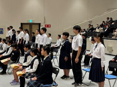 式の前の入場の様子や壇上の表彰者、式の様子を紹介します。