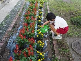 今はサルビアとマリーゴールドの花がきれいに咲いています。