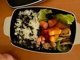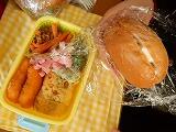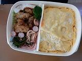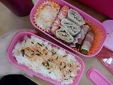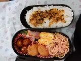 本日のお弁当では、オムライス、いなり寿司、ベーグルサンドなど