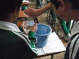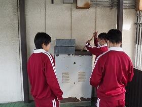寒い通路での作業ながら、係の生徒はとても一生懸命に取り組んでいます。