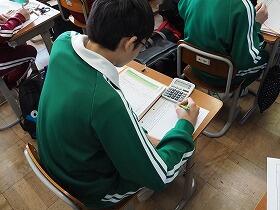 1学年の数学は、立体の展開図をかいたり体積を求めたりする学習を行っています。