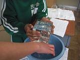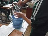 錐体の公式を導くために、水と模型を用いた実験を行いました。
