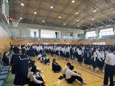 保護者の方も来校され、生徒とともに熱心に説明を聞いていました。