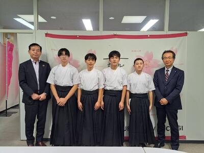 10月10日、この夏の全国大会で準優勝した弓道部員が市役所を表敬訪問しました。