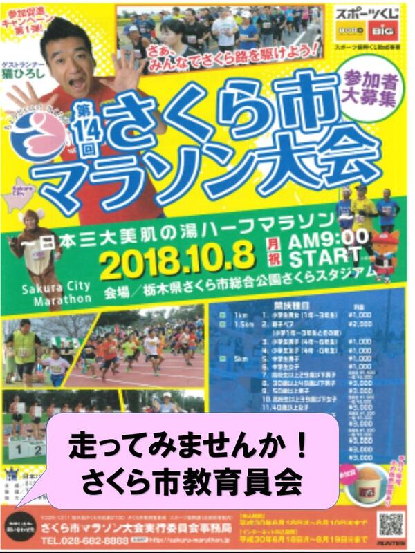さくら市マラソン大会が、ポスターのとおり10月8日(月)に開催されます。