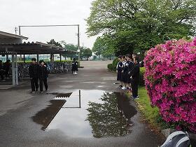 東西の昇降口と駐輪場に生徒会役員が立ち、