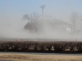 グランドでは、向こう側が見えづらくなるほど、砂が吹き飛んでいました。