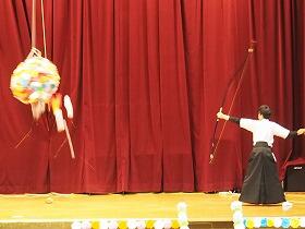 開会式での弓道部によるくす玉割りや、