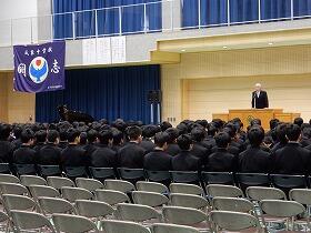 同窓会入会式では、同窓会長よりあいさつをいただき、
