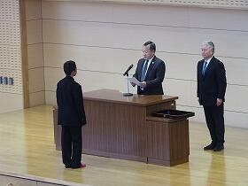 各学年の代表者に校長先生より任命書が手渡されました。