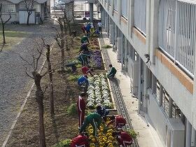 中庭の学級花壇の手入れを行っていました。