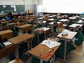大きな地震が発生した後に、給食室から出火して火災が