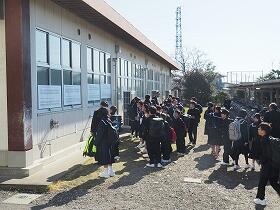担任の先生に先導されて、2,3年生と多数の保護者・来賓が