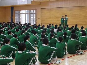 第3学年では、各クラスの学級委員になった2名が前に出て、