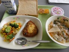 ブロッコリーサラダ お祝いいちごゼリー 牛乳 です。