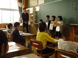 6名の先生方をお迎えしました。 代表児童が、お迎えの言葉を述べました。