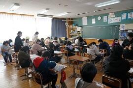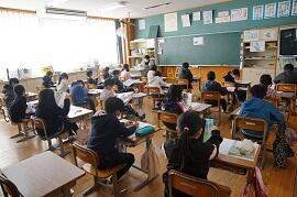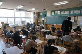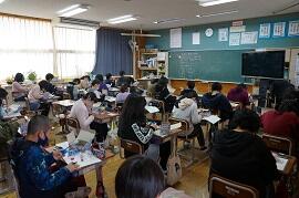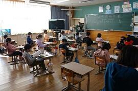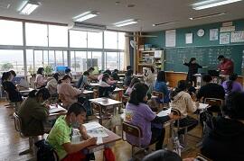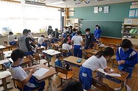 1時間めの様子です。どのクラスもしっかり勉強しているように見えました。1時間めの終わり頃なので、勉強が終わったクラスもありました。