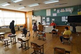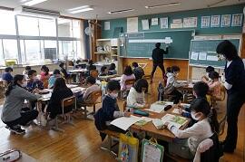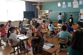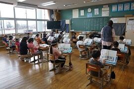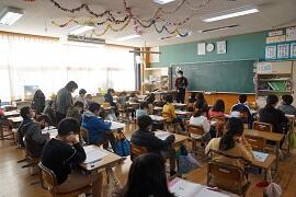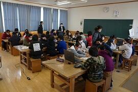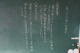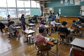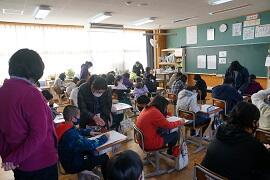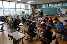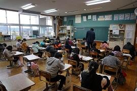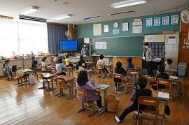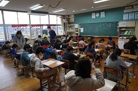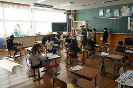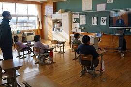 感染拡大により各教室で行いました。学習指導主任は校内放送で、校長はビデオで、冬休み後集会をしました。背筋を伸ばして姿勢を正して聞いている子がいました。校長が「あけましておめでとうございます。」とあいさつすると、テレビに向かって「あけましておめでとうございます。」とあいさつしている子がいました。写真を撮りに行った私に対して、モニターとカメラを持った校長の二人がいることに驚いた子もいました。ほほえましかったです。