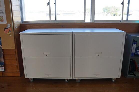 金曜日から土曜日にかけて、タブレットを保管しておくラックが設置されました。この写真で2学年分です。