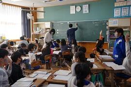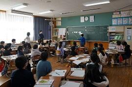 1・2・6年で研究授業を行いました。前回、3・4・5年が算数や学級活動の研究授業を行ったのに続く2回目の校内研修でした。
