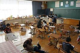 2組と3組は合同で、個別学習をしていました。担任が出張で不在だったこともあったと思われます。