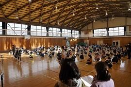 2時間め後に体育館で冬休み前集会を開きました。