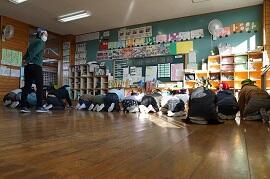 解散後は、6年生ややさしい委員が「ばみり」(目印テープ)をはがしていました。感染拡大防止と集会のねらいの両方を兼ねるよう工夫した集会でした。子どもたちはよく考えたものだと感心しました。