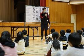 最初に校長から、家庭学習強化週間やQU、握力などのデータから今年を振り返りました。