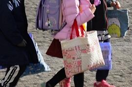 たくさんの荷物を持って下校していきました。中には、昨日もらったばかりのエコバッグを使っていた子もいました。