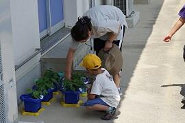 7月10日(金)の朝の活動は、みどりの時間でした。水曜日にするはずでしたが、雨が続いたので今日になりました。