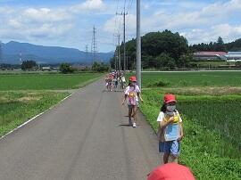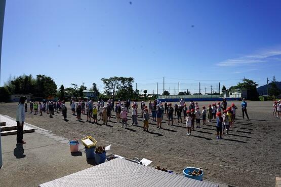 今日から、1・2年生の下校が始まりました。暑かったので、昇降口の前で集まりました。