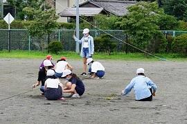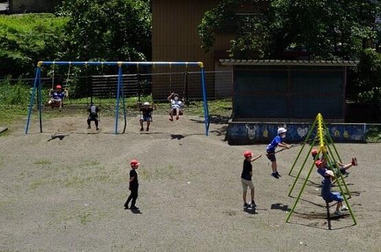 左の写真のように、全員が外で遊んでいるクラスがありました。