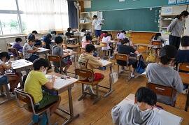 国語では、「初雪のふる日」を学習していました。雪や氷など、この6月としては時季外れであり、子どもたちにとっては興味関心が薄れやすい教材になってしまいましたが、何とか理解を深めようと、指導者は苦心していました。コロナの影響です。