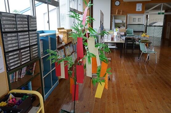七夕飾りがありました。そういえば、明日は七夕です。天の川は見られない曇りの予報ですが、せめて願い事が叶えばいいです。「走るのが早くなりますように。」、「計算が早くできますように。」、「家族で遊園地に行けますように。」、「ずっと健康でいられますように。」など、もしかするとコロナの影響で、体力や学力が落ちたり、外出自粛の影響が出ているのかもしれません。