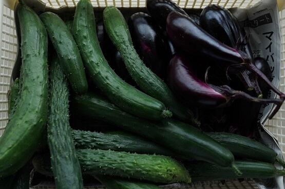 3年生が野菜を育てています。総合的な学習の時間で「野菜を育てよう」を学習しているからです。今日収穫したところ、ナス、キュウリ、トマトなどのたくさんの野菜がとれました。まだまだとれそうです。