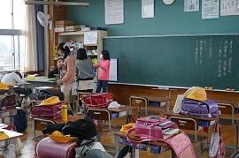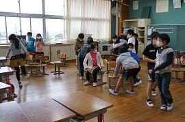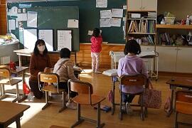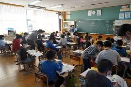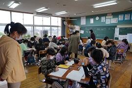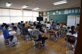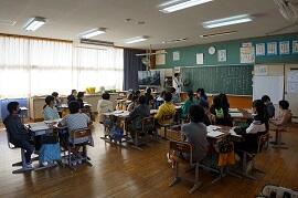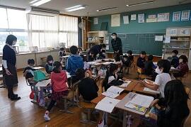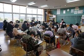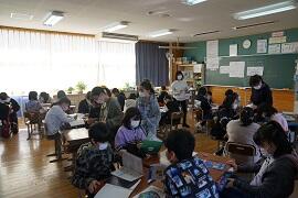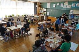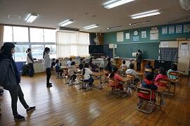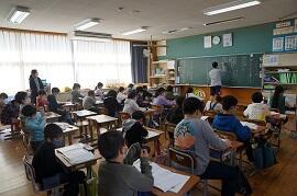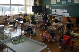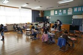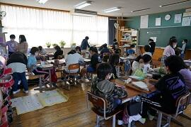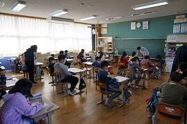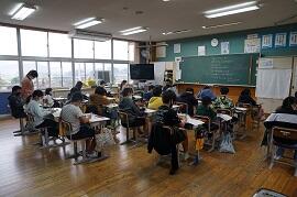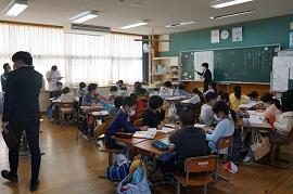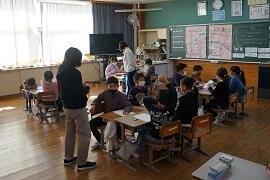 音楽や体育などの技能教科をしているクラスが多かったです。町内の授業研究会に出張しているクラスもありました。2・3組は、全員交流学習でした。