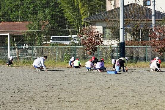 1年生は、国語の「しらせたいな、見せたいな」で、校庭で見つけた物を知らせる勉強でした。