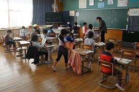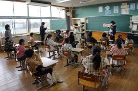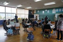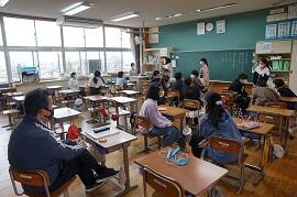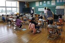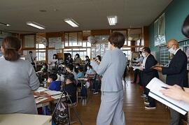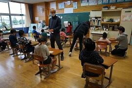 10月22日(木)、朝の会でスクール・サポート・スタッフを各教室を回って紹介しました。このスクール・サポート・スタッフは、感染防止のために消毒・検温・換気など新たに増えた業務を支援する県の非常勤職員です。2月末まで、毎日午前中勤務します。ありがたいことです。県や町の配慮に感謝します。
