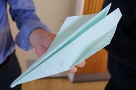 2・3組は、紙ヒコーキ大会の練習をしていました。