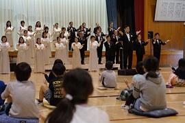 文化庁主催の「文化芸術による子供育成総合事業ー巡回公演事業ー<合唱公演>」がありました。3・4時間めが1・2・3年生、5・6時間めが4・5・6年生でした。東京合唱協会の皆さんは、全員PCR検査を受け、当日朝の検温でも異状がないことを確認した上での公演でした。歌う際も、透明マスクをつけていました。マスクをつけての合唱でも、生の声は素晴らしく、子どもたちも感動したことと思います。メディアで音楽を聴くことはあるかもしれませんが、本物の生の声を聴かせる体験ができてよかったと思います。皆さんのコロナ対策に感謝します。