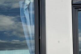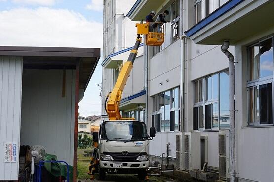 風が強かったため、高所作業車が揺れたり、フィルムが風にあおられたりして大変だったようです。夕方にはきれいになりました。