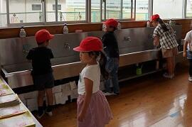 遊びから帰ると、消毒や手洗いをしている子がいました。いつも忘れず立派です。