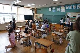 放課後、運動会の種目説明会をしました。今回は、例年行われている伝統的な種目でも見直しが行われました。マリ入れや綱引きは密になるので削除、応援合戦も飛沫感染を避けるため削除され、入退場は密を避けるために現地集合現地解散で行います。また競技中だけマスクを外し、児童席ではマスクを着用します。コロナ対策を十分に行うために、競技内容や入退場にも慎重に検討されました。変更した内容は、準備や合図・放送などの各係で検討され、コロナの中でも円滑に進行できるように、教職員一人一人が知恵を出し合っていました。いい運動会になりそうです。